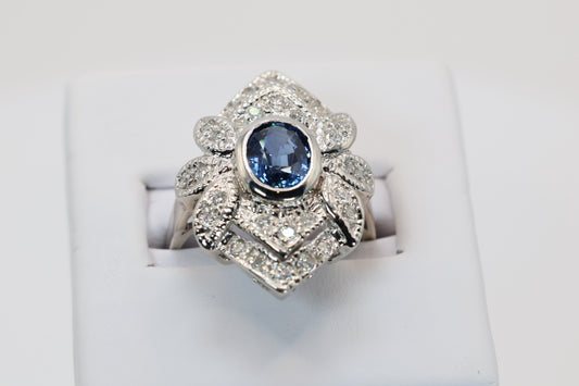 Vintage Inspired Oval Sapphire Ring with Diamonds