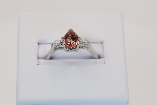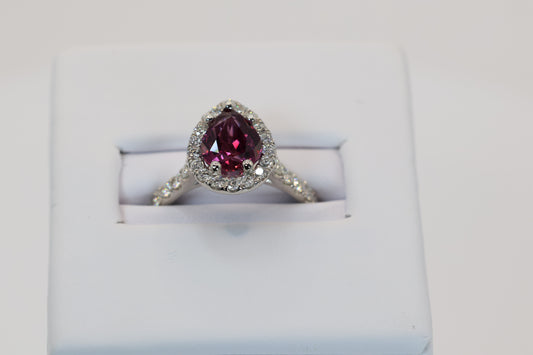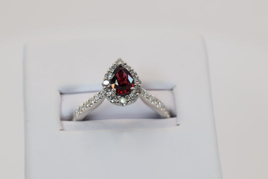 Lrg Pear Shaped Ruby Ring 14k wg with diamonds