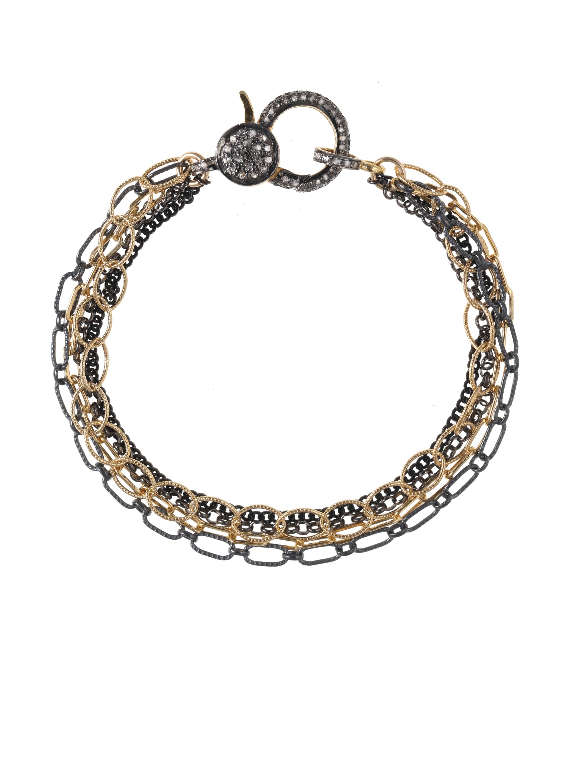 Gold and silver chain combo, diamond clasp, 18kt/ss, 7.25” L