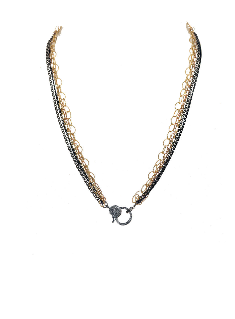 Gold, silver, rose chain combo, diamond clasp, 18kt/ss, 20”
