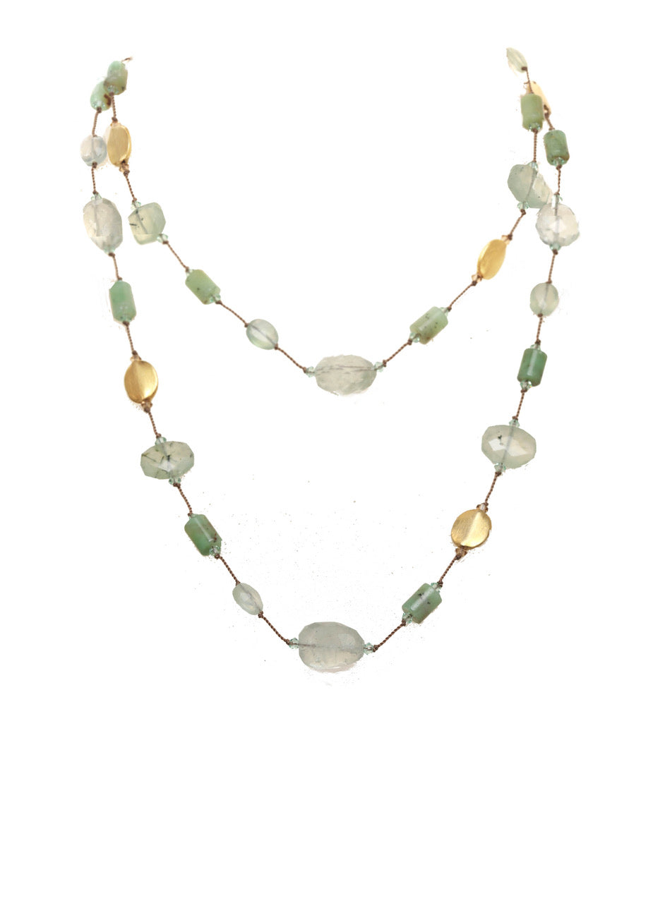 Ltd. Ed. Chrysoprase, prenite, green amethyst, 14kt gp bead, vermeil toggle, 35”