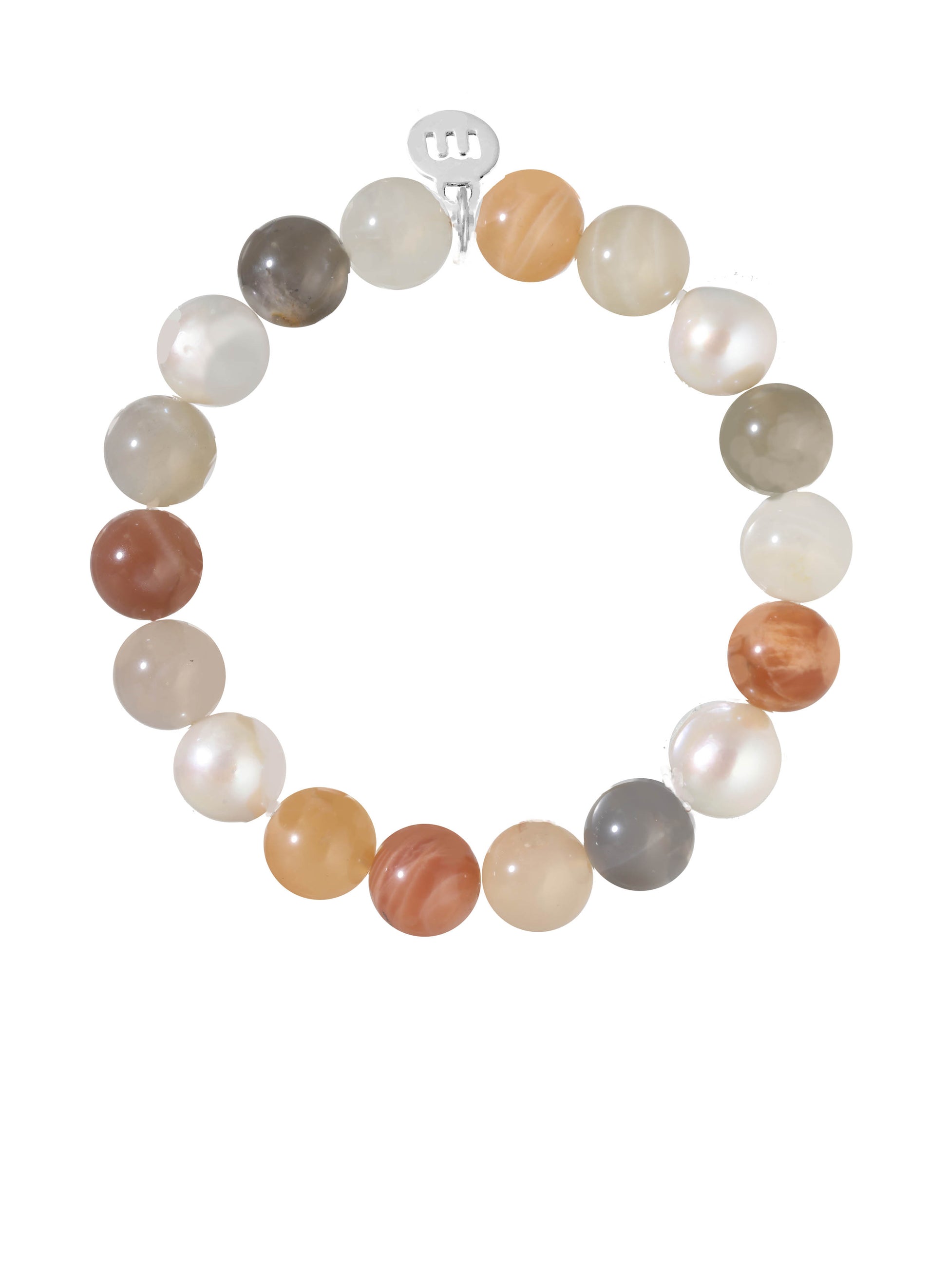 Multi-color moonstone, white baroque pearl, 7.25” stretch