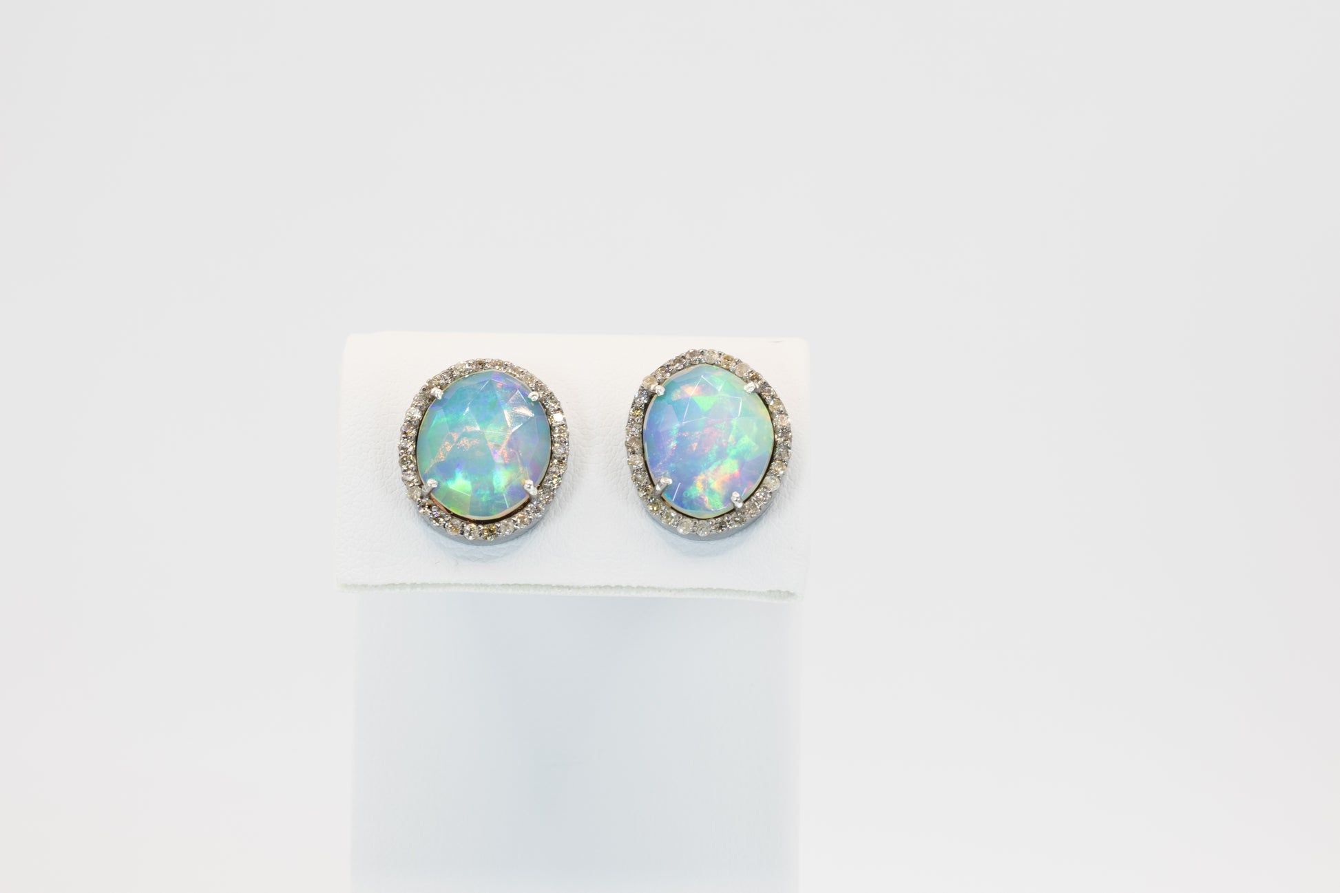 Opal Earrings with Diamond Halo set in Sterling Silver