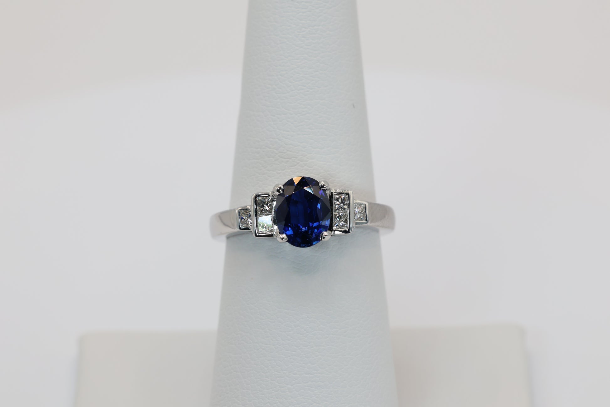 Oval Sapphire Ring with Step-Down Diamond Accents