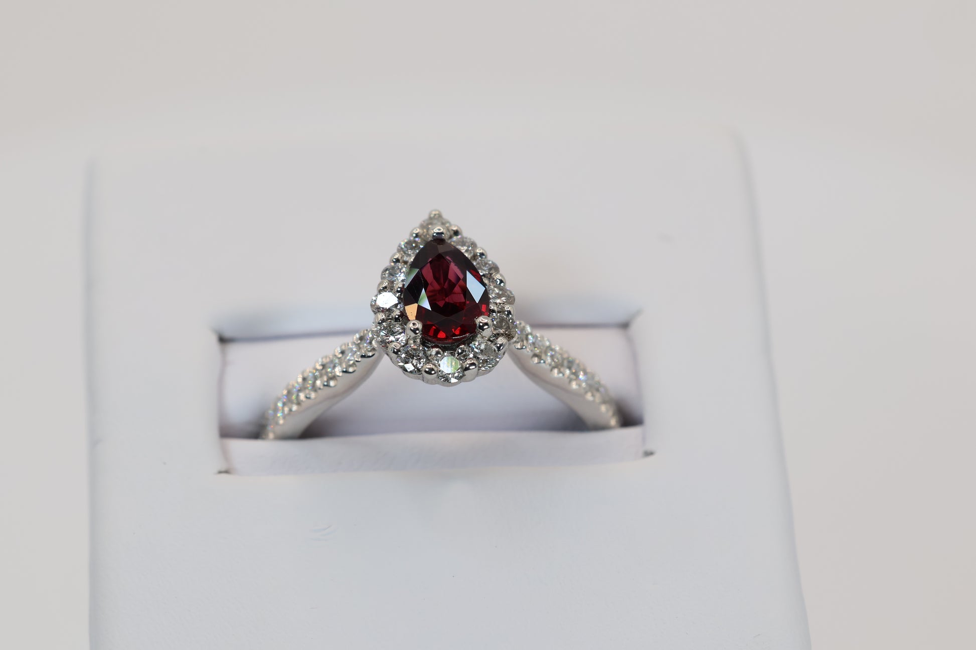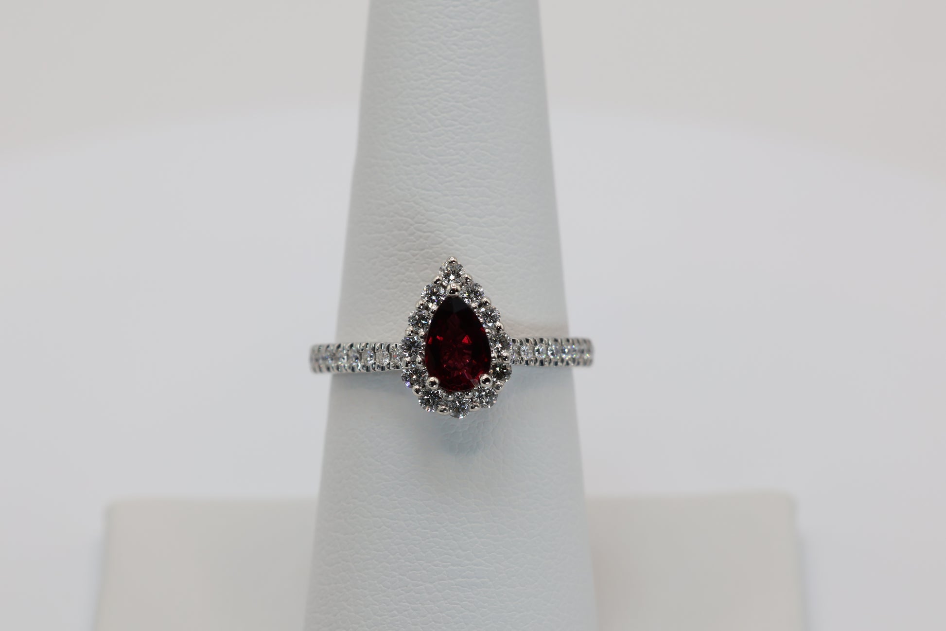 Elevate your style with our exquisite Ruby Ring featuring a dazzling .63ct ruby centerpiece accented by .30ct of brilliant diamonds. This timeless piece seamlessly blends sophistication with a touch of glamour, making it the perfect statement accessory for any occasion.