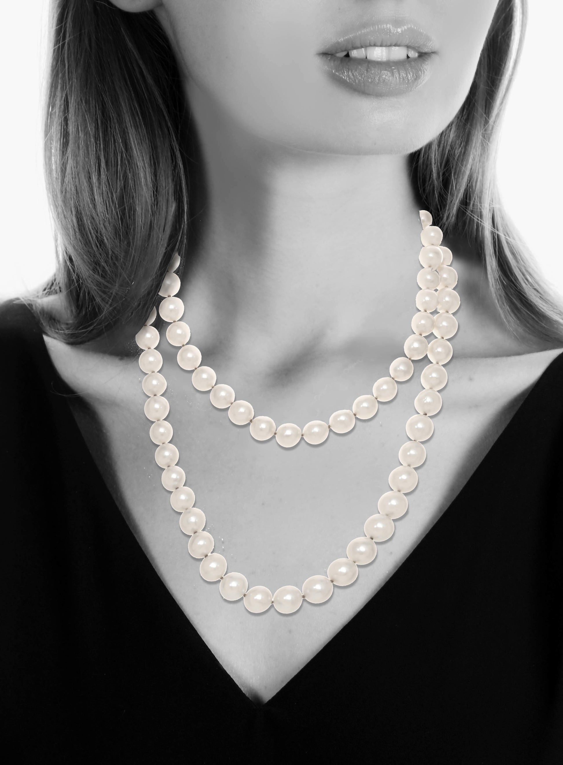 White freshwater Edison pearl, 10-12mm, 18K/ss toggle, 35” L